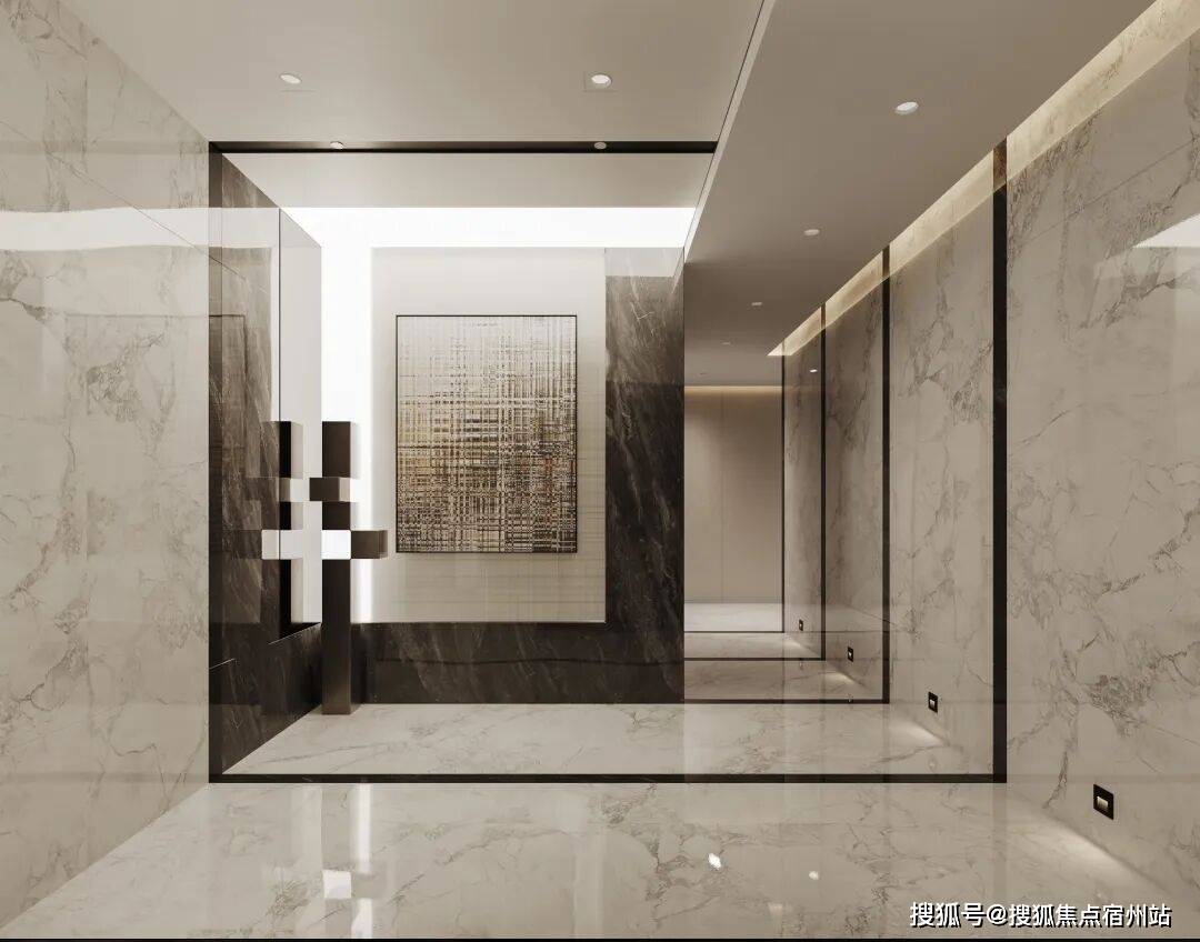 双重洗护豪华地下车库:双入户精装大堂,凝练高阶归家仪式感;星空顶、铝合金吊顶、8CM晶磨石地坪;
